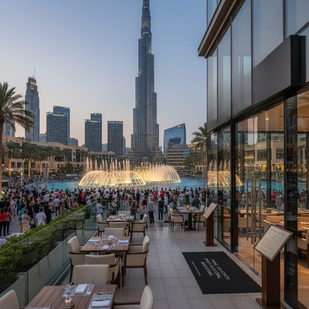 Fountain-View Terrace: The restaurant’s outdoor terrace offers front-row views of the Burj Khalifa fountain shows — a key attraction for both tourists and residents.